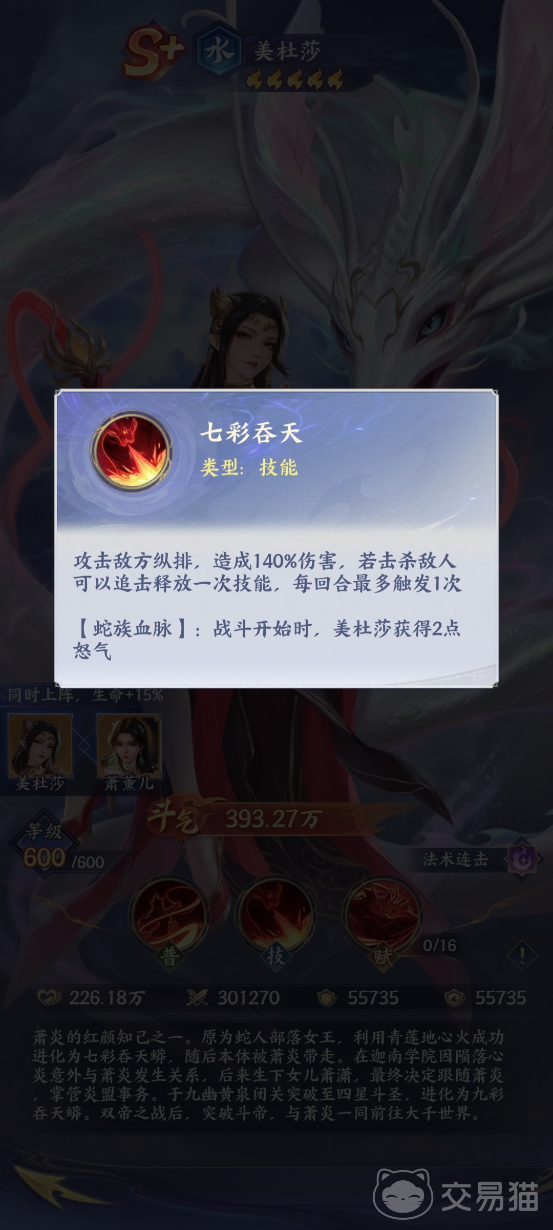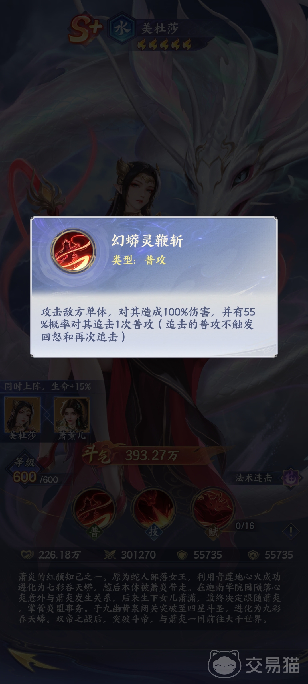 作为橙卡品质角色,美杜莎具备良好的泛用性与阵容适配性。若与萧炎、萧薰儿共同组队,可形成双核爆发体系,显著提升整体队伍的瞬时输出上限与战术容错率。