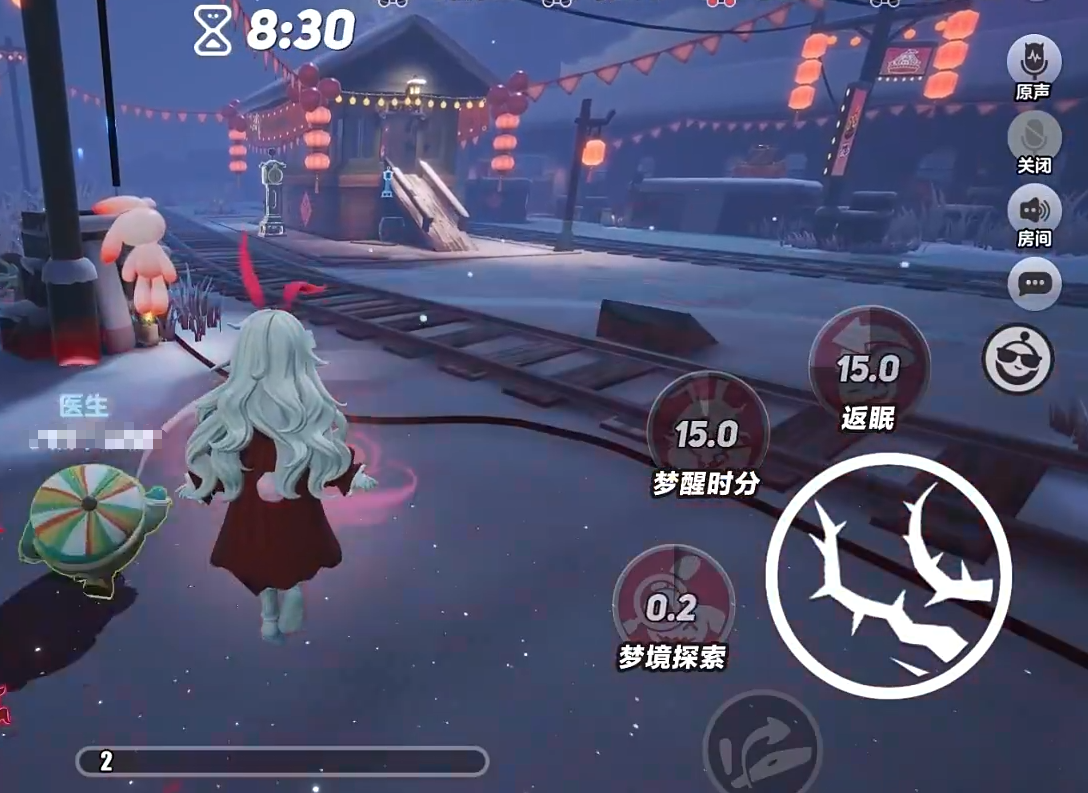 一技能【梦境玩偶】:桃乐丝可部署兔子玩偶至指定交互点——包括蒸汽炉或爆米花机附近执行自主巡逻;亦可令其跟随己方队友行动。兔子玩偶具备同步普攻能力,且能跨越高度≤60cm的低矮障碍物,在范围内持续扫描并标记逃生者位置,实时暴露其藏匿坐标。