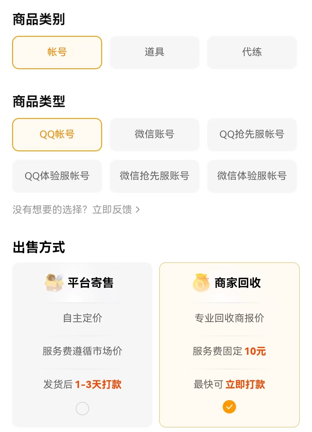 再就是针对一些热门游戏平台,还推出了商家回收的功能,这项服务是由专业账号回收商人进行报价,收取固定10元服务费,最快可立即打款。这对于想要快速变现的用户来说非常方便,立即就能拿到收益,而且商家回收更不会出现各种风险问题。不过即使是平台寄售方式,待发货之后也会在1~3天之内直接打款,打款到账及时,也是交易猫不可忽视的一项优势。