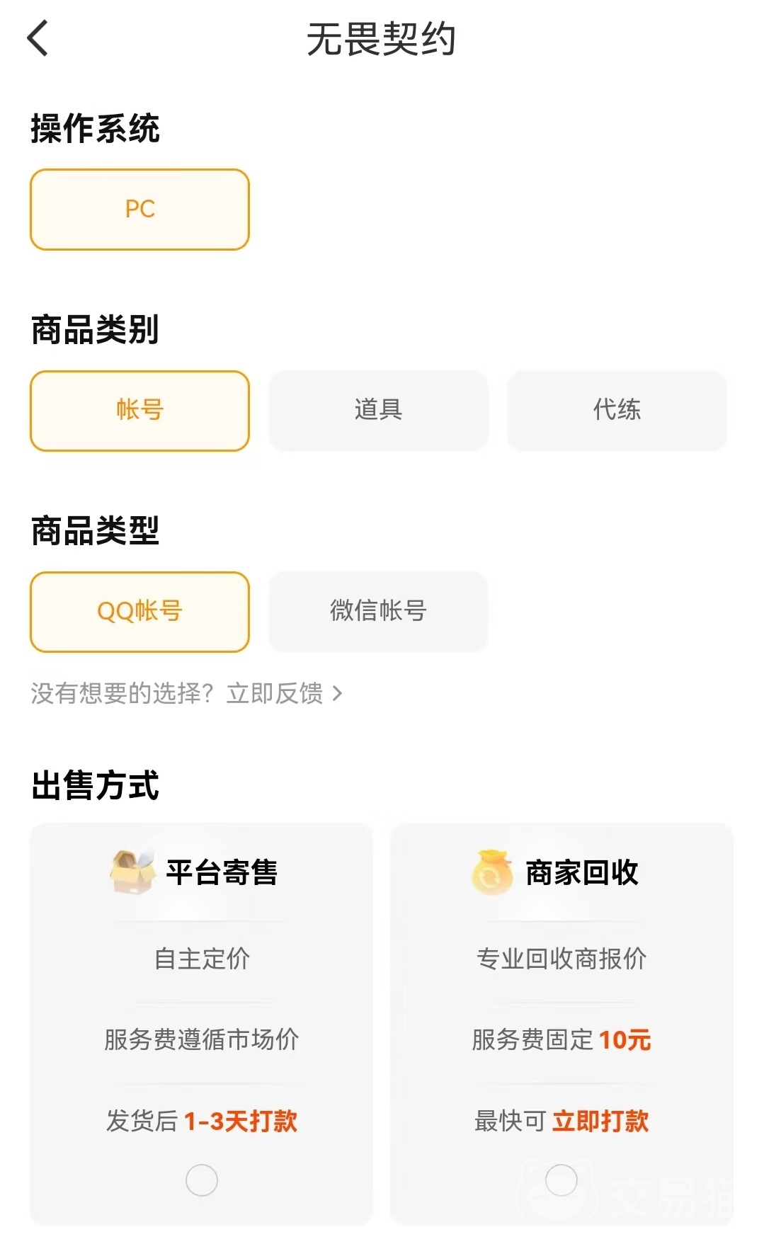 在这里卖号有两种选择,分别是平台寄售和商家回收,这两项各有优势。平台寄售的特点是自主定价,可以卖的稍贵一些,服务费按照市场价去收取,发货后1~3天打款。商家回收优势是可能回收价稍低于市场价,但是服务费固定只收10元,最快立即可打款。如果想要快速变现,商家回收是不错的选择。如果选择平台寄售,操作起来也很方便,因为有官方验号提供服务,这样既可以节省操作,又能够增加账号曝光的机会,加快出售速度。
