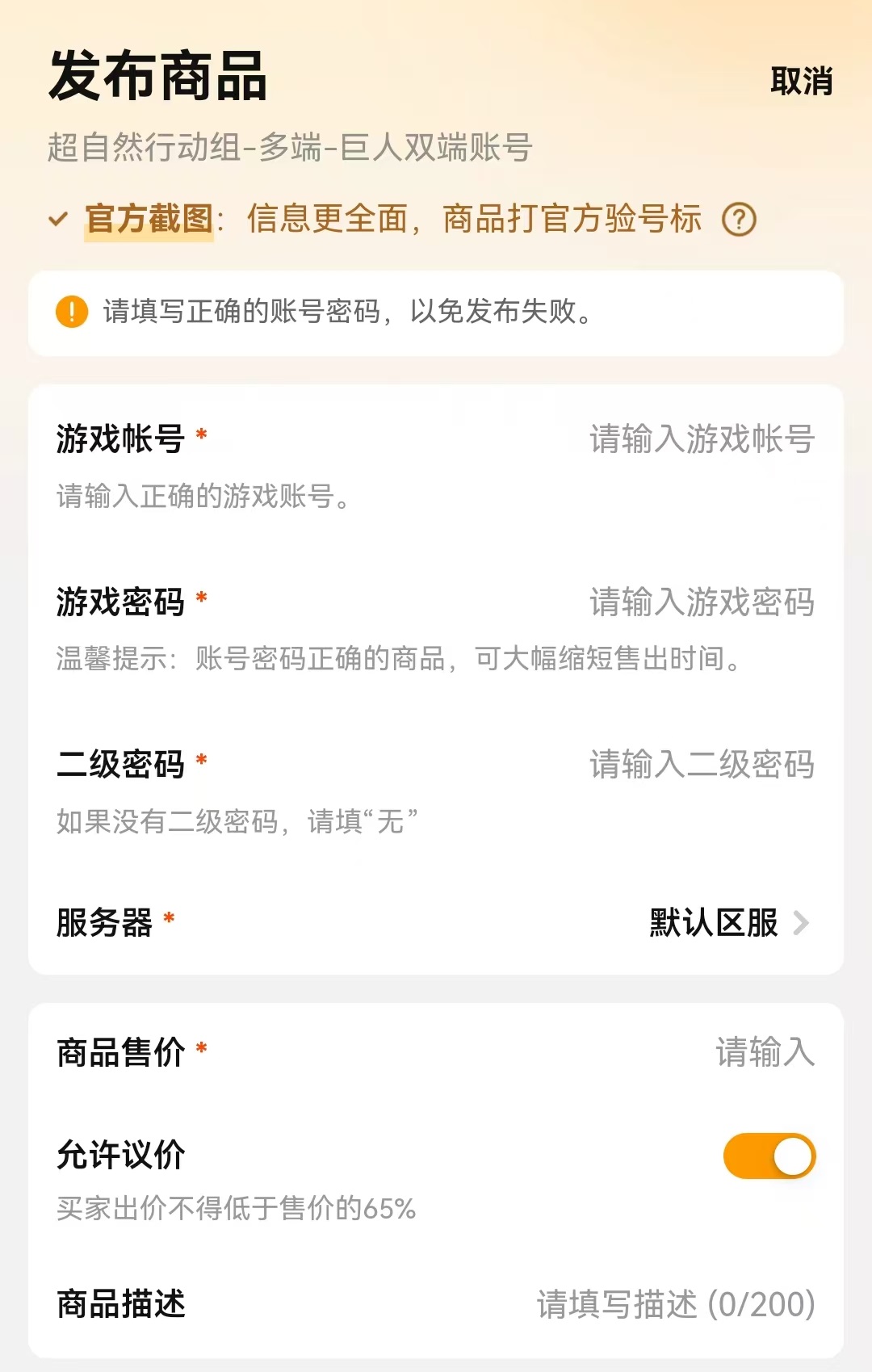 其次是在这里上架非常简单。在出售的时候上架这款商品,可以采用官方截图的方式,官方截图信息更全面,而且商品上会打上官方验号的标签,里面的信息都是由官方账号帮助截图展现,发布时既省时又省心,还能获得更快的出售效率。账号上架之后,其他的就不用再担心,买家下单付款后会有专业交易人员来进行操作。卖家只需要上线进行简单配合,帮助将之前绑定解除和重新绑定就可以坐等收益到账了。一般在交易完成后的1~3天就会直接转过来。