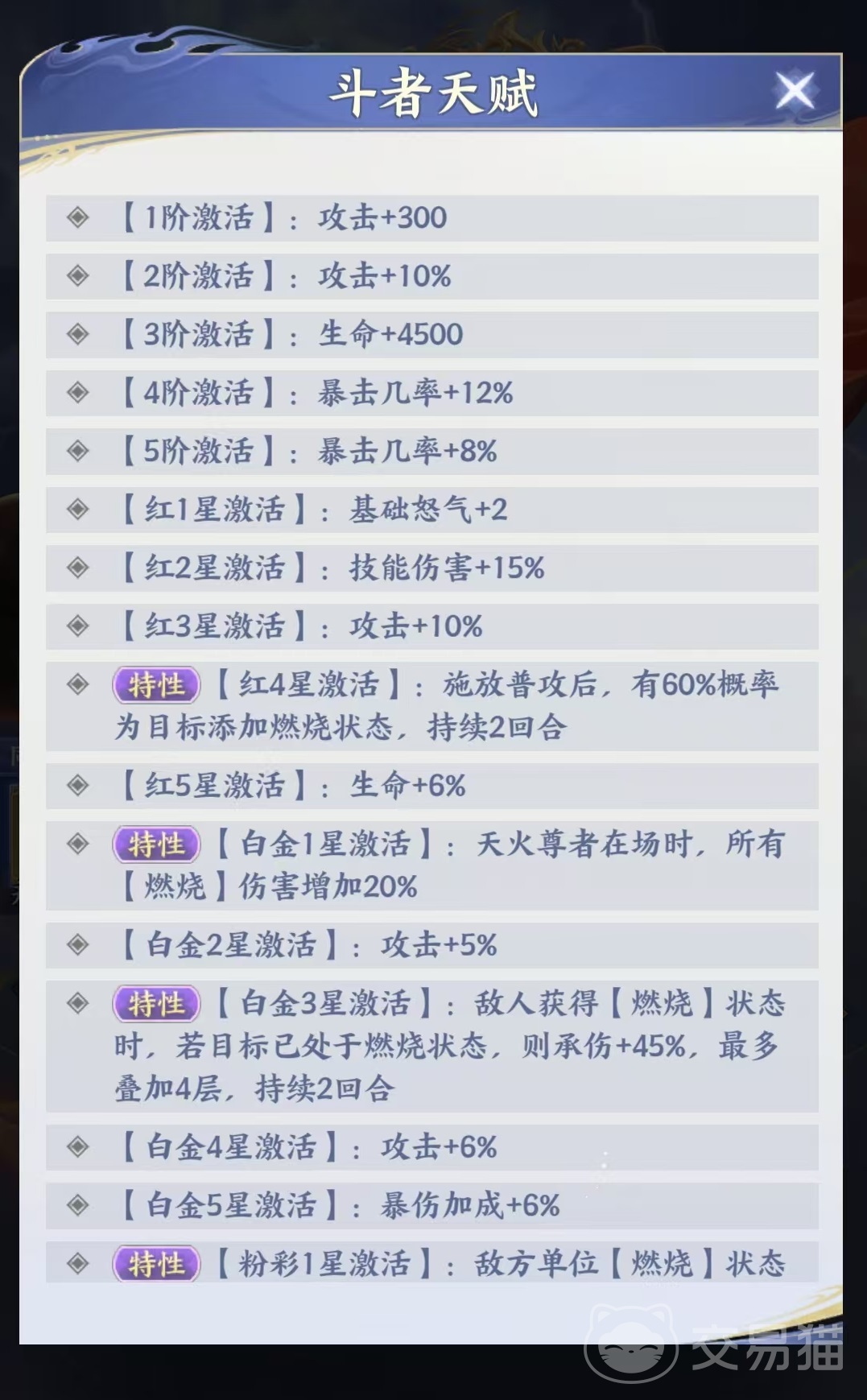 综合来看,天火尊者在《斗破苍穹》手游中具备明确的战略定位与不可替代的功能价值。其技能逻辑紧密贴合原著人设,机制深度契合燃烧流派构建逻辑。若玩家计划组建以持续真伤为核心的队伍,该角色属于必练、必养、必首发的关键卡牌。