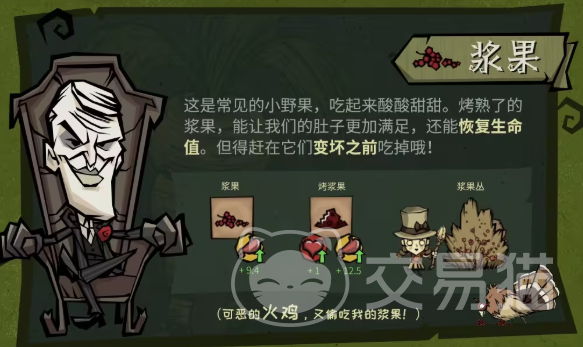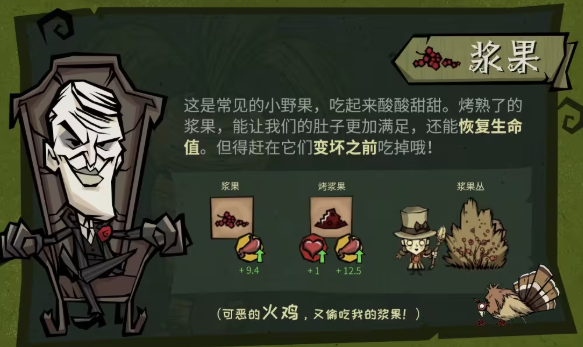 浆果丛呈簇状分布在丘陵、河岸及林地边缘,采集无工具限制且刷新稳定。生浆果提供10点饱腹度,经篝火烘烤后转化为熟浆果,可恢复25点生命值并附加5点护甲值,是中期前应对突发战斗损伤的理想应急补给。但其腐败周期仅为6分钟(游戏内时间),且存在被野生火鸡主动啄食的风险,建议即采即用或短时储存。