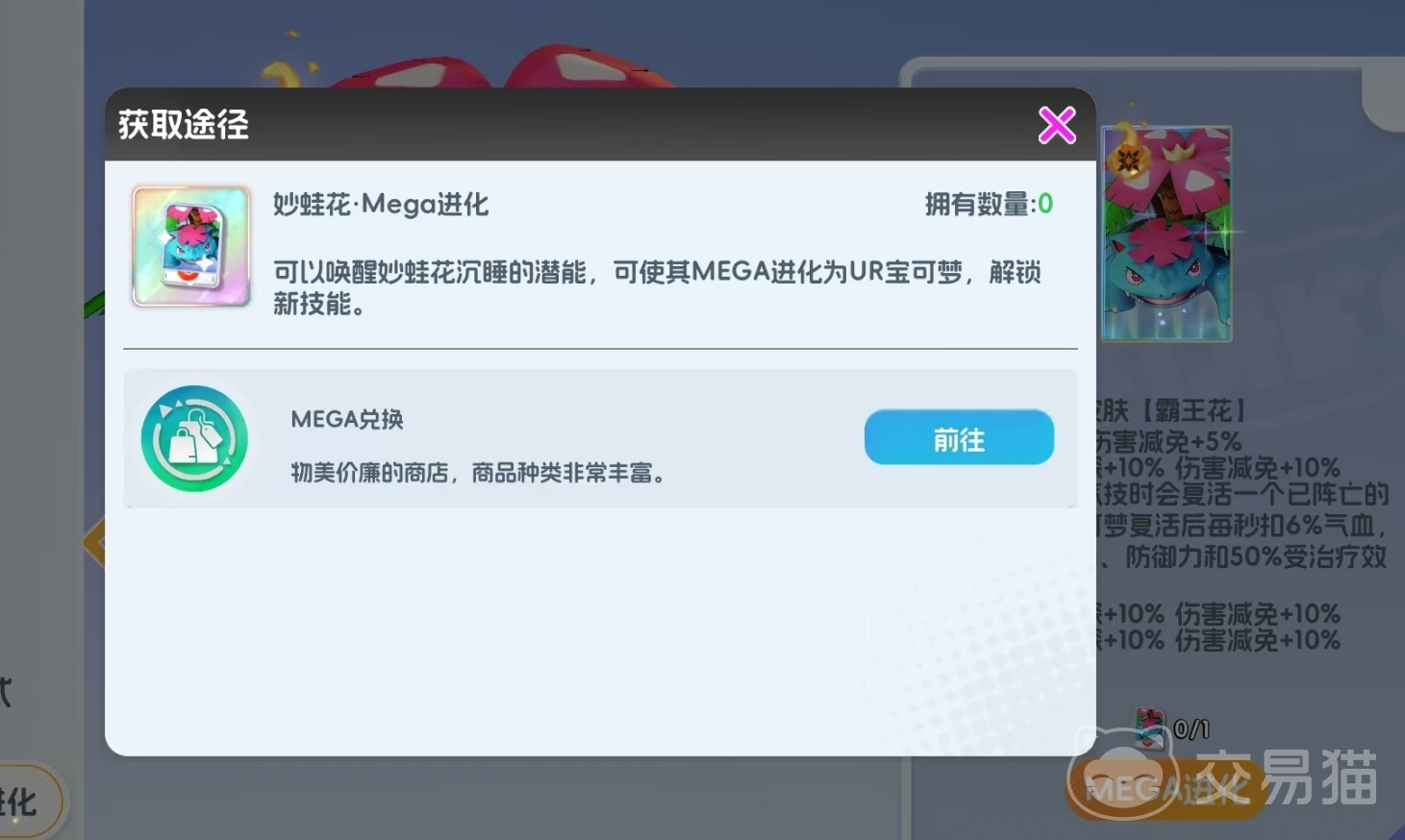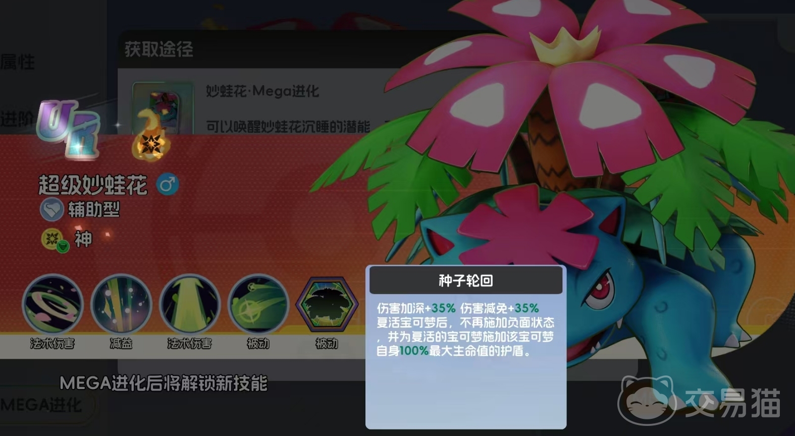 获取超级妙蛙花需满足两个前置条件:第一,将妙蛙种子培养至开放MEGA进化的品阶;第二,在游戏内MEGA兑换系统中获取并使用妙蛙花MEGA进化卡。二者缺一不可。成功完成MEGA进化后,妙蛙种子将即时转变为超级妙蛙花形态,品质同步由SP跃升至UR。目前MEGA兑换功能暂未实装,建议玩家先行提升妙蛙种子等级与基础属性,待系统开放后第一时间完成兑换流程。