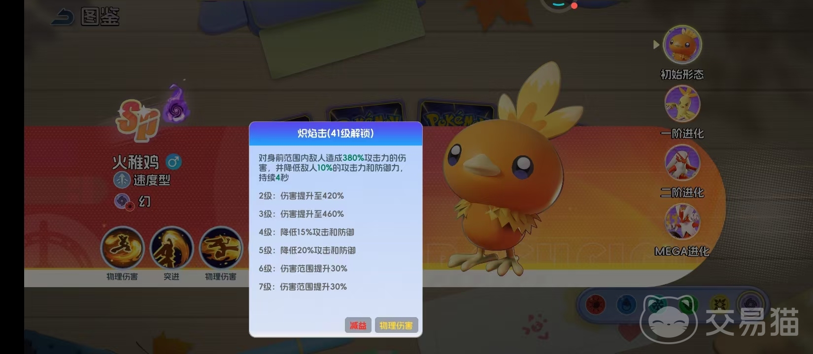 炽焰击——41级解锁技能,标志着火稚鸡从单点突破转向战场调控。该技能对前方范围敌人造成380%攻击力的物理伤害,并附加双重减益:降低目标10%攻击力与10%防御力。随着技能等级提升,减益幅度最高可强化至20%,同时影响范围扩大30%。在密集阵型的团战场景中,该技能能有效削弱敌方前排坦度,间接放大全队输出收益,是节奏转换的关键支点。