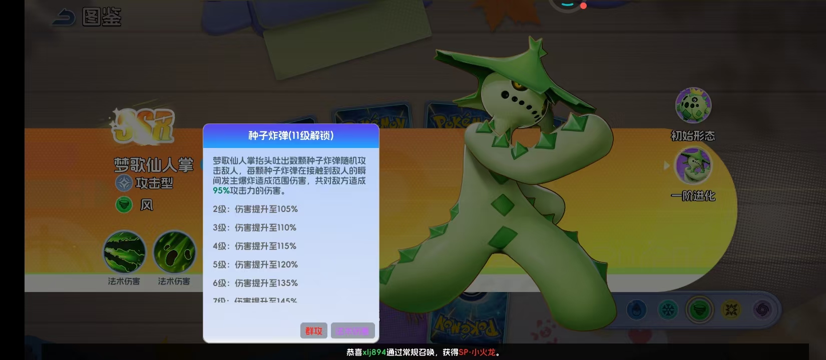 在宝可梦题材的手游生态中,部分宝可梦凭借独特的机制设计与战术定位,成为高策略性阵容中的关键变量。梦歌仙人掌正是这样一只兼具反制能力与持续压制力的风属性进攻型精灵。本文将系统解析其进阶路径、各阶段核心机制及实战价值,帮助训练家清晰掌握该宠的成长逻辑与团队适配逻辑。
