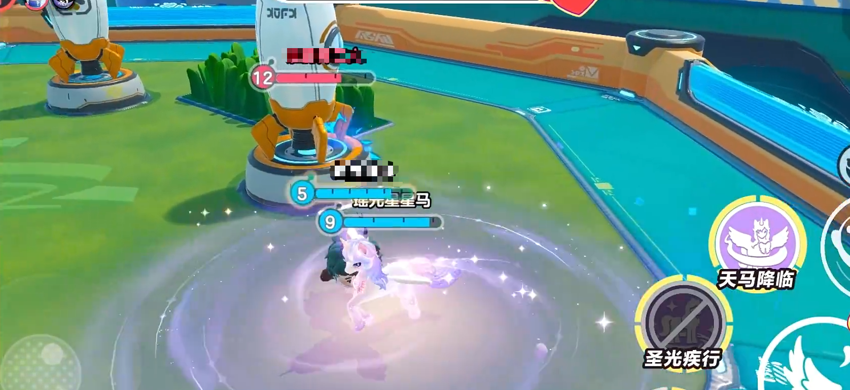 三技能“天马降临”为战术级大招:召唤天马自空中俯冲而下,对路径上敌人造成高额伤害,同时为沿途友方单位恢复生命值。该技能兼顾远程压制、区域清场与团队续航,体现其攻防一体的战术价值。