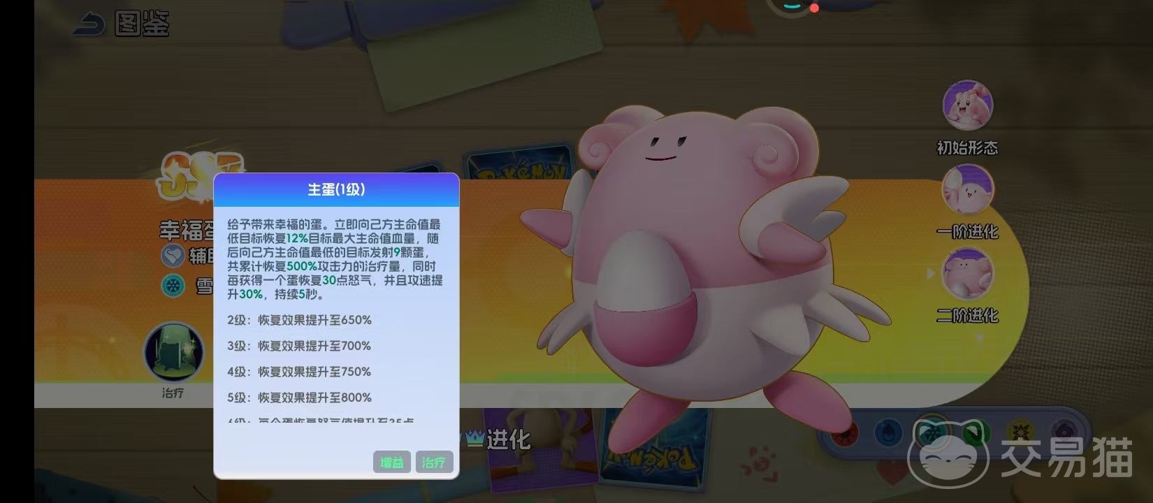 小福蛋的核心竞争力在于刚柔并济的战斗风格——既可稳定维持队伍续航,又能在关键时刻提供战术支援。随着进化进程推进,其治疗效能持续增强:初始形态即具备基础恢复能力,进化为吉利蛋后技能等级提升至5级,最终成长为幸福蛋时,标志性技能“生蛋”达到满阶效果。该技能可对生命值最低的友方单位立即恢复12%最大生命值,并额外发射9颗治愈之蛋;每颗蛋提供相当于自身攻击力800%总和的治疗量,同时附带30点怒气回复与30%攻击速度加成,大幅强化队友持续作战能力。