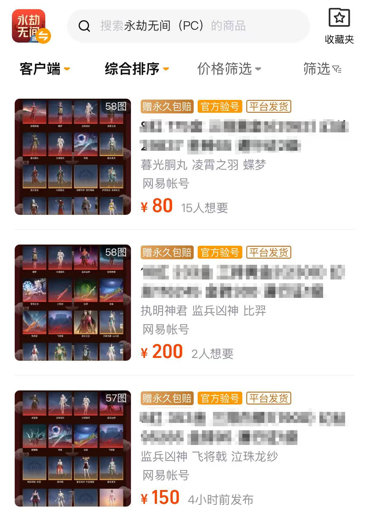 本期可靠的永劫无间账号交易平台推荐就聊到这里,游戏账号交易并不复杂,选择交易猫就等于选择了安全、省心、专业。用交易猫买游戏账号根本没有后顾之忧,全场成品号永久包赔,无论售出后多久都依然保障大家的权益。