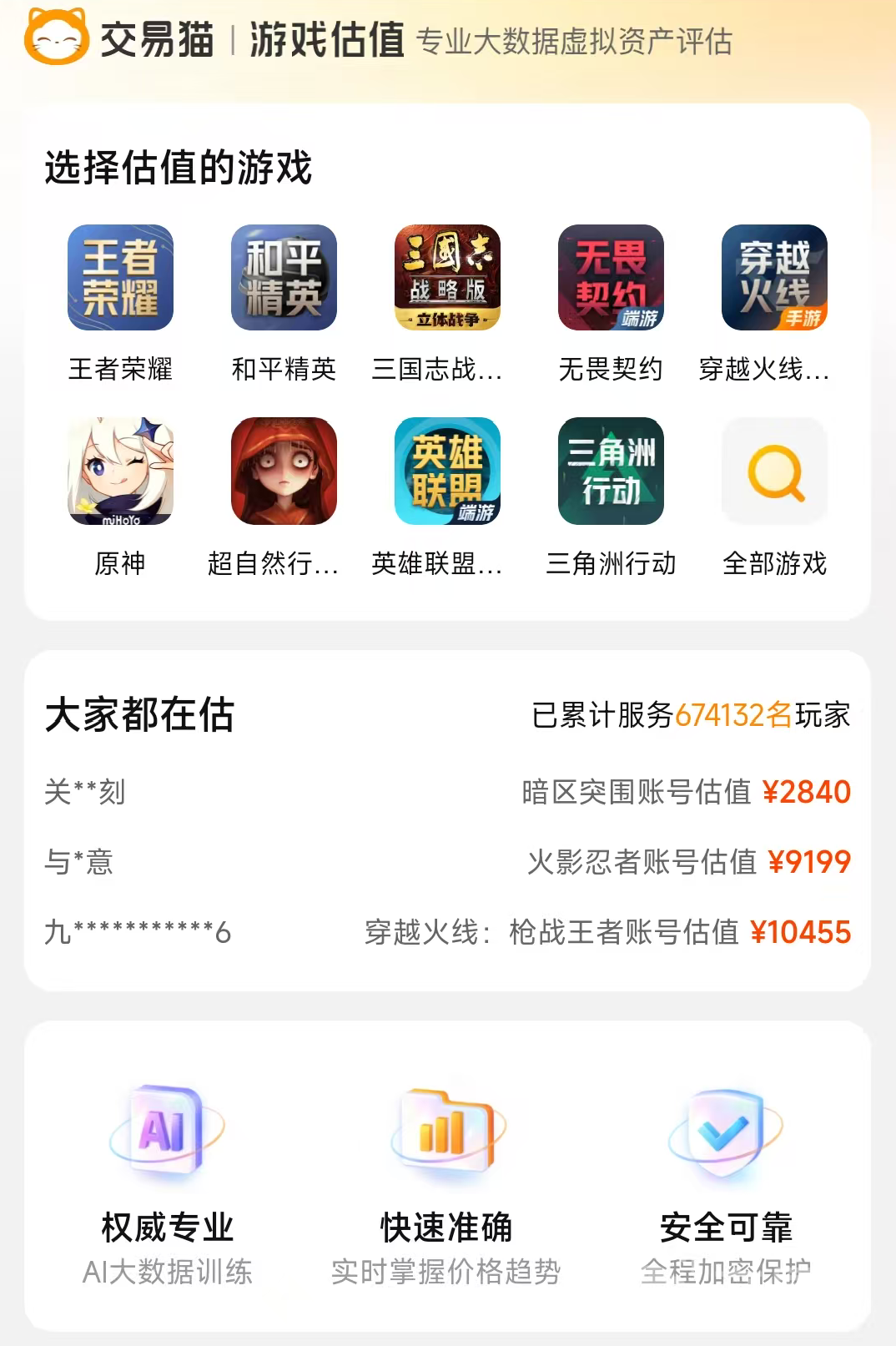 一部分玩家想要将自己账号出售的,交易猫拥有一个出色的交易功能,这个功能可以帮助玩家们估算出自己的价格,需要玩家们提供账号的截图信息以及渠道服,这样后续很快就能估算出一个准确的价格,之后到交易猫平台进行出售,很快就会有买家出现的。