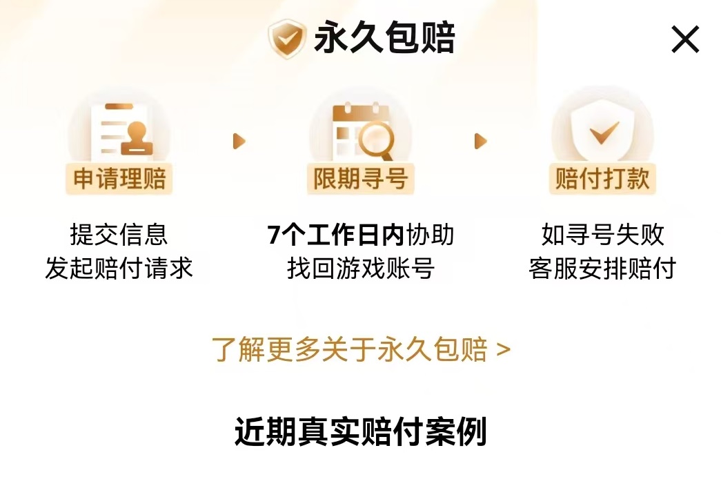 交易猫中的在售的商品类型丰富,主要有成品号、游戏道具、游戏内货币和自抽号等各种类型,部分商品还提供代练服务。这样不同用户就可以在这里满足自己的不同需求,出售者也可以有更丰富的交易可选项,这样利润也有保障。在安全方面完全不用担心,成品号都提供了了永久包赔,只是比例有所不同。分为30%和全额包赔这两类,不过30%比例也可以自己动手添加成全额包赔。至于非成品号等其他商品,都是平台中的保证金卖家,因为缴纳过保证金,并且经过严格的认证,所以交易起来也值得信赖。