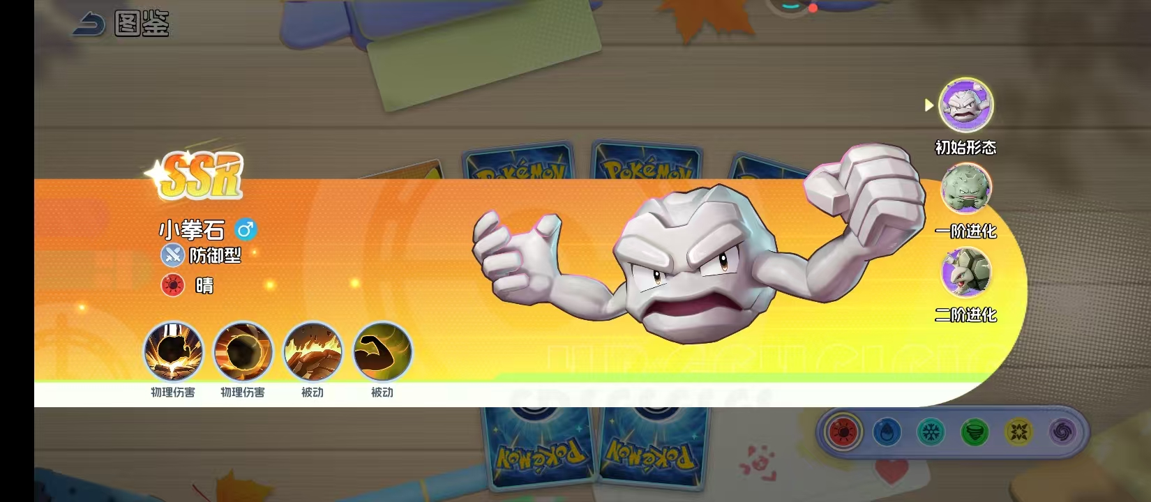 在宝可梦题材的策略对战游戏中,小拳石作为经典岩石系宝可梦,其成长路径具有鲜明的阶段性特征与战术价值。它虽初始形态看似平凡,却蕴含显著的防御潜力与后期质变空间。本文将系统梳理其完整进化链路,并解析各阶段在实战中的定位差异与能力演进逻辑。