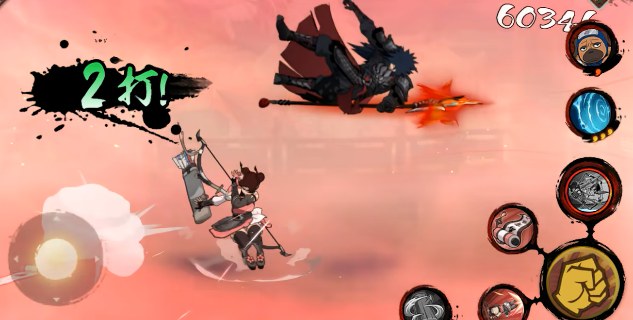 另一核心技能「白驹过隙」同样为两段设计:首段为拉弓前冲接飞踢,实现位移与控制;第二段向前突进翻转,将敌人踢飞后向后跃步蓄力,最终射出一箭。此箭效果完全取决于当前箭筒所载箭种——毒箭附加中毒,贯穿箭提升单体爆发,爆炸箭触发范围爆炸与燃烧。