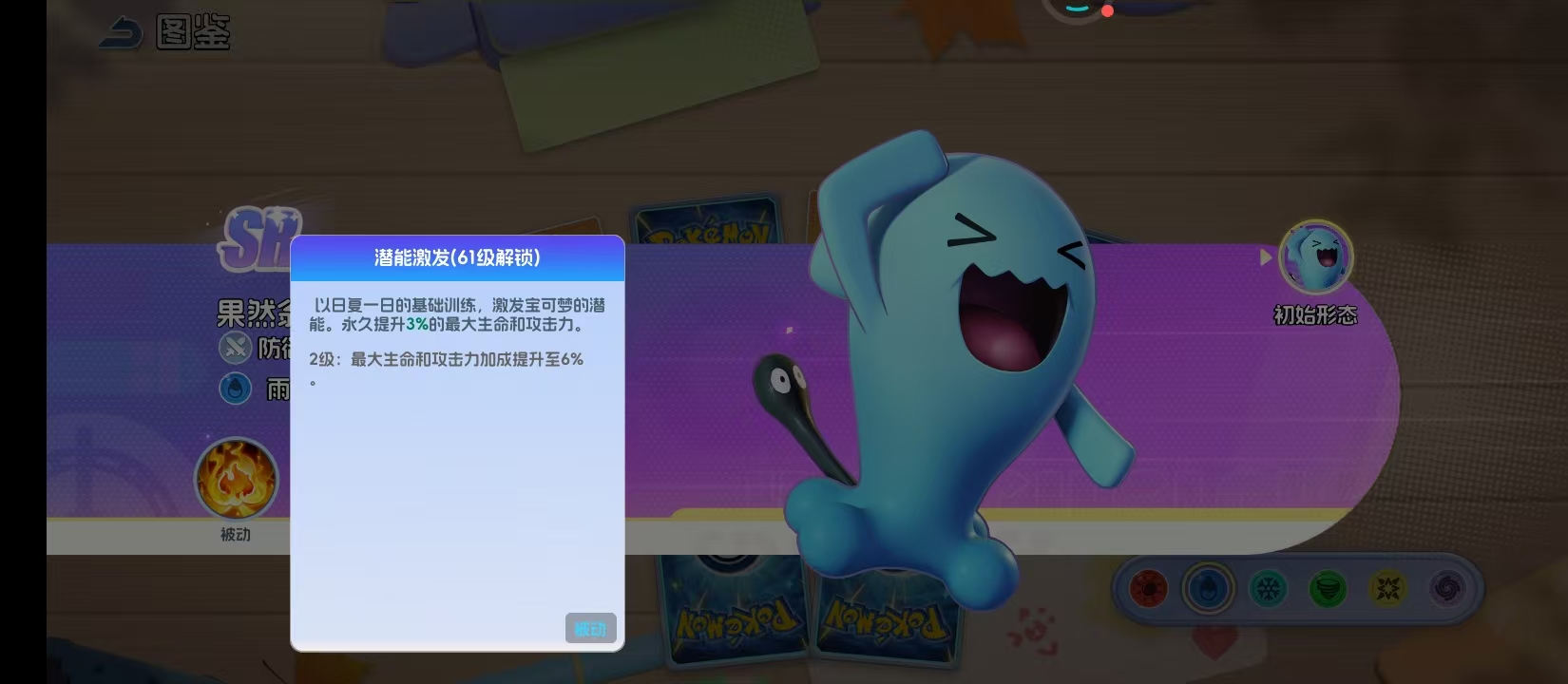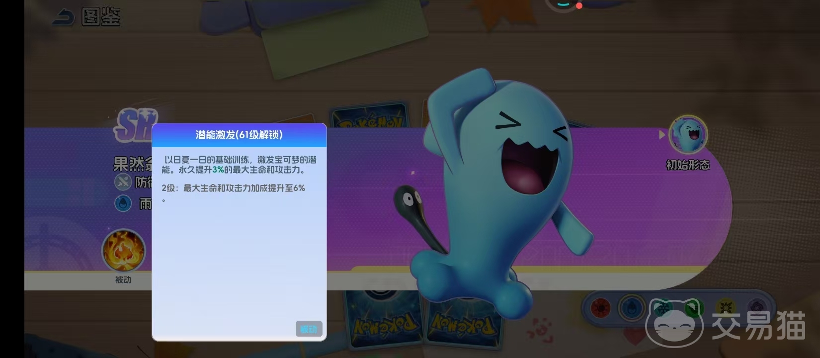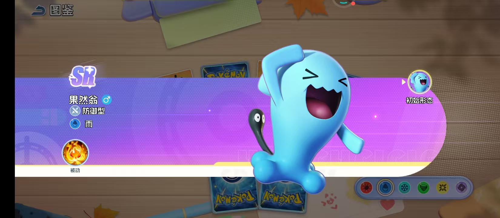 在宝可梦题材的策略对战体系中,果然是一个极具辨识度与战术深度的角色。它通体呈现沉稳的湛蓝色调,圆润体型搭配标志性黑色短尾,外形看似憨态可掬,实则承载着高度成熟的生存逻辑。尽管不具备高爆发技能或华丽连段机制,但其核心定位始终围绕“反制”与“承伤转化”展开,在队伍构建中承担不可替代的战术支点作用。
