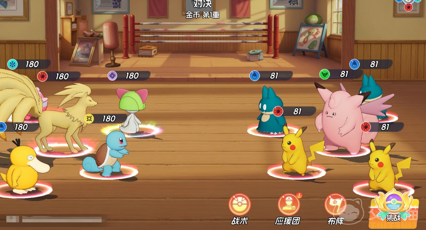 在阵容搭配方面,推荐采用“2攻+2辅+1防”的标准五人体系。除九尾外,第二名攻击位优先选用SP级宝可梦,如小火龙或帽子皮卡丘;若暂无SP级单位,任意SSR级攻击型宝可梦亦可胜任。辅助位选择灵活度较高:侧重生存可配置莲叶童子与小福蛋;侧重控场则推荐拉鲁拉丝与皮宝宝组合。防御位建议携带控场能力突出的杰尼龟或小磁怪;若队伍偏重前排压制,利路欧也是可行之选。