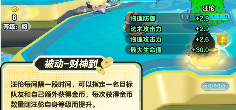 汪伦的基础能力围绕“经济赋能”与“区域控场”展开。其被动技能可在固定冷却后,主动为一名队友提供额外金币。该效果不触发装备购买限制,直接计入当前局内经济系统,显著加快队友前期出装节奏,尤其利于射手或法师类角色快速成型关键装备,在前中期建立资源压制优势。