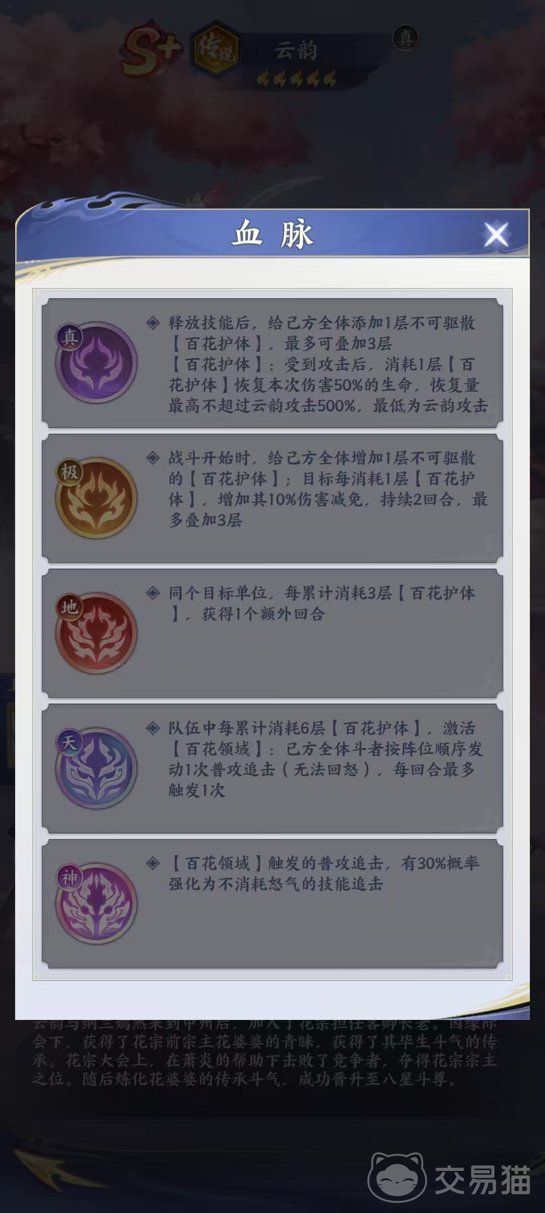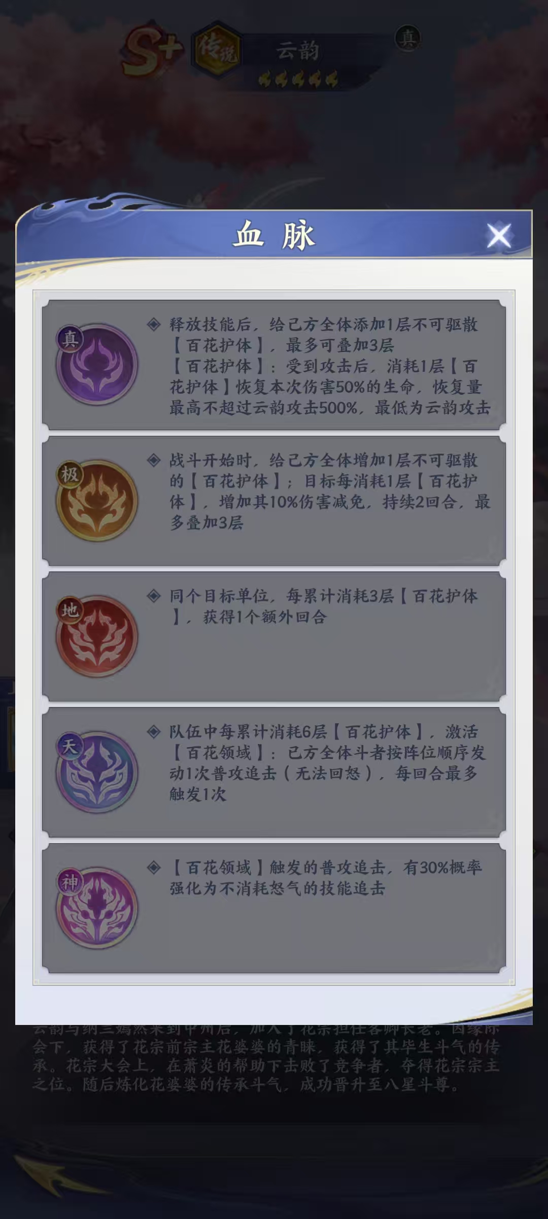 云韵是《斗破苍穹》手游内稀有度为“传说”的核心辅助型角色,身份设定为花宗宗主,同时也是主角萧炎的重要羁绊人物。其核心机制“百花护体”具备独特的减伤+反制联动效果,在高难副本与PVP环境中具有不可替代的战略价值。不同于常规治疗者,云韵的生存增益体系覆盖治疗、复活、护盾转化、全队普攻强化等多个维度,属于兼具功能性与节奏控制能力的复合型斗者。