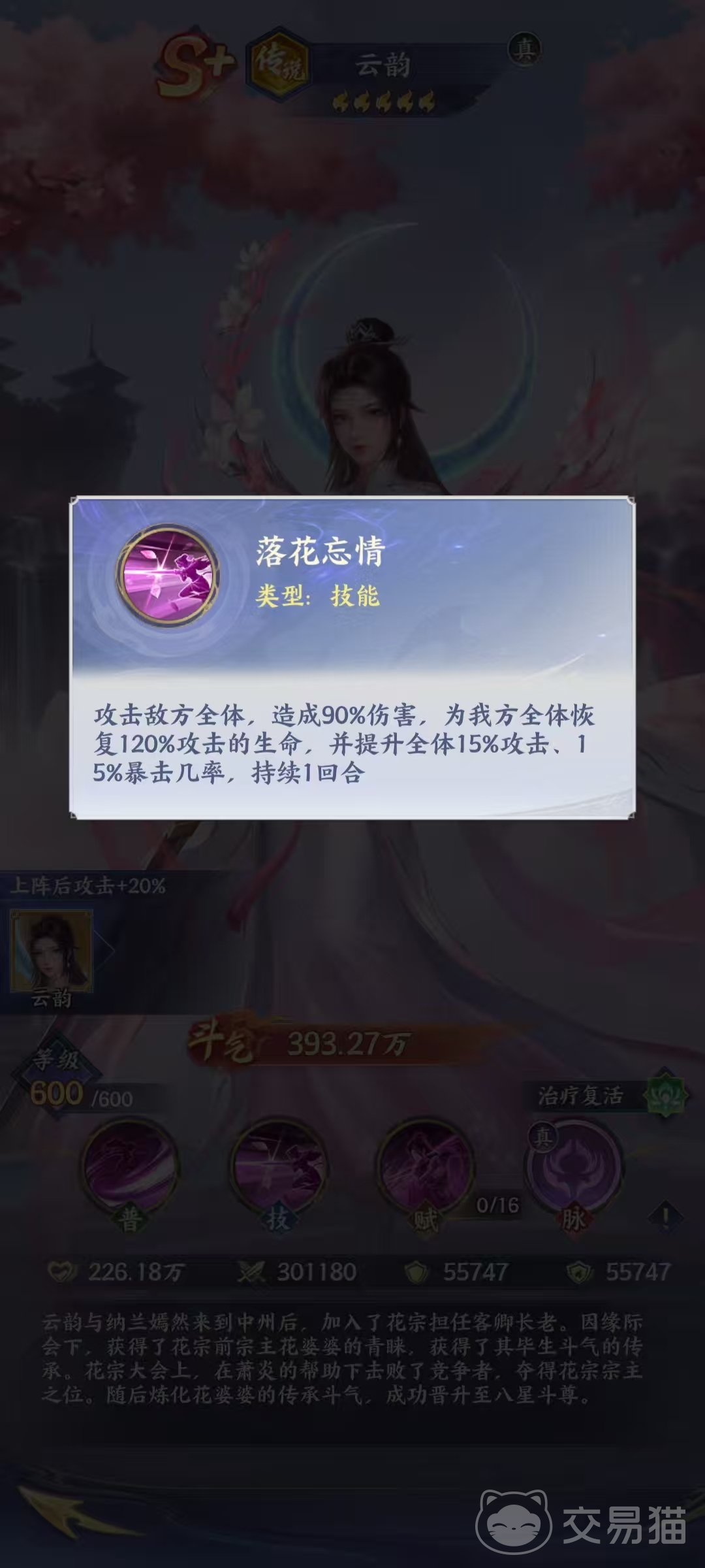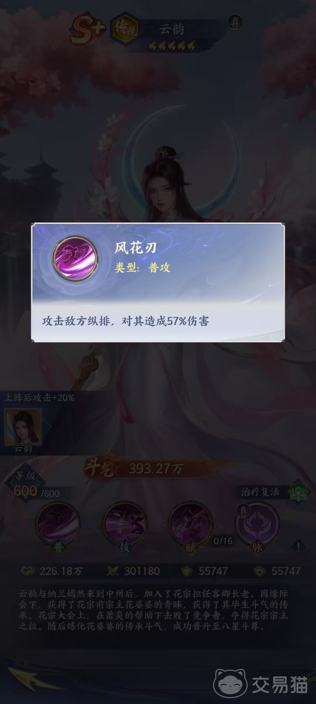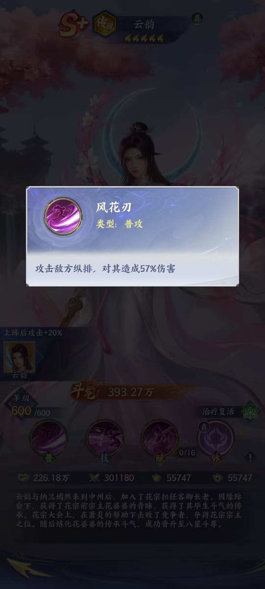 《斗破苍穹》手游中,传说品质角色云韵的实战定位与机制解析