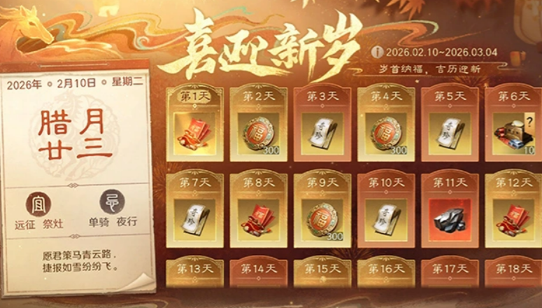 新春佳节将至,《三国谋定天下》正式开启马年主题大型版本活动,活动周期覆盖2月10日至3月4日,部分玩法延续至3月24日,整体节奏紧凑、内容丰富。本次新春系列活动涵盖签到领奖、剧情互动、限时抽奖、社交红包、趣味竞技等多种形式,兼顾策略性与娱乐性,为玩家提供持续近一个月的节日体验。