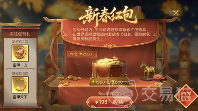 【红包系统】强化玩家间互动体验,活动持续至3月24日。获得黄金红包或玲珑玉红包后,可在世界频道或同盟频道进行发放;发包者将根据累计次数获得限时称号徽章——“富甲一方”与“富甲天下”,具备唯一展示属性,兼具实用性与收藏价值。