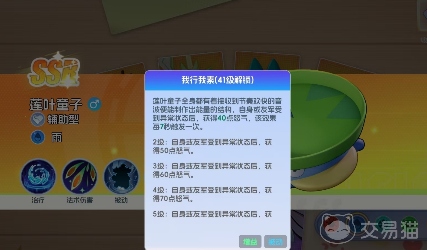 当莲叶童子等级达到41级后,将激活被动技能“我行我素”,该效果可在自身或任意队友触发异常状态时,立即恢复一定怒气值。虽然存在7秒冷却时间,但配合合理的怒气管理节奏,可实现大招高频循环释放。高等级下,莲叶童子往往能在同一战斗周期内完成两次及以上“求雨”释放,而多数同梯队辅助仅能释放一次,由此形成明显的战术压制优势。另一项基础技能则专注于生存强化,通过提升最大生命值与防御属性,确保其在前排或中排站位中具备稳定的承伤能力。