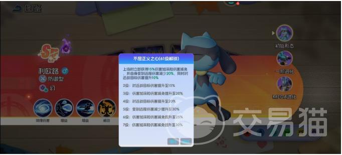 被动技能“不屈正义之心”于61级激活,登场即获得15%伤害加深与15%伤害减免,并额外减少20%所受远程伤害;同时对近战目标造成的伤害提升10%。随技能等级提升,各项增益线性增强:7级时,伤害加深与减免均达30%,远程减伤亦提升至30%。这一机制显著优化其对抗远程消耗阵容的适应性,进一步巩固其作为多功能防御型宝可梦的战术纵深。