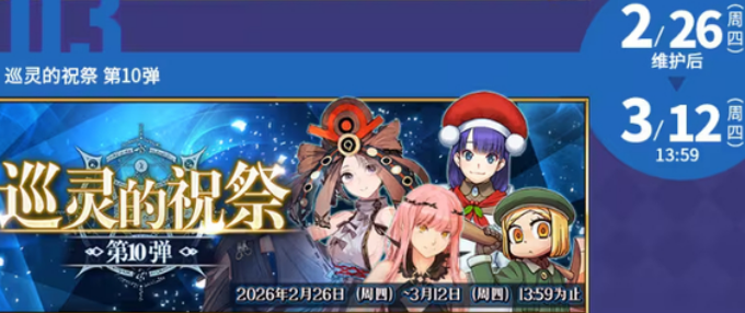 本月共设置三场核心活动:情人节限定活动、巡灵祝祭第10弹按惯例如期开启,时间安排与历史周期基本一致;而真正承载春节氛围与资源峰值的是“2026新春庆贺活动”,将于2月12日正式启动,持续至2月26日。根据过往运营规律,该活动将整合日服冬日祭系列资源——包括呼符、圣晶石、金苹果等关键道具,并同步发放对应纪念礼装。值得注意的是,国服历年均在基础包基础上追加额外配给,2025年实际发放量已验证高于日服标准,今年大概率延续这一策略。