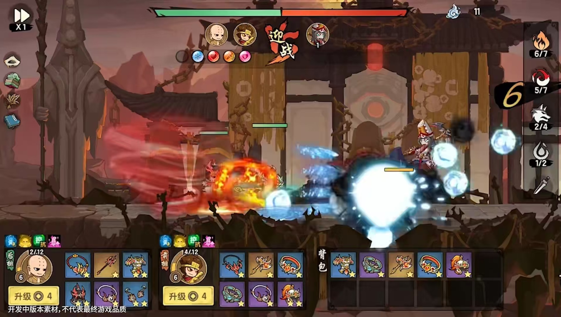 本作被广泛视为造梦西游系列第六代正统作品,采用标准横版动作架构,强调技能连段响应、浮空衔接触发联动效果及实时操作反馈。初始开放孙悟空、唐三藏、牛魔王三位可选主角:孙悟空定位高机动近战爆发,操作容错率高,适合新手入门;唐三藏以远程法术输出为核心,伤害稳定且具备持续压制能力;牛魔王则侧重生存与范围控制,拥有强韧护甲与群体击退技能,适配硬核攻坚场景。战斗中需结合虚拟摇杆位移、轻重攻击节奏切换、技能释放时机及闪避/格挡防御机制,形成个性化操作体系。