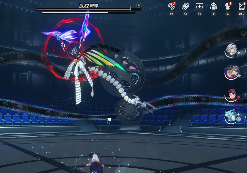 当Boss血量降至40%左右时,进入第二阶段。该阶段机动性显著提升:斑蝶将频繁进行短距瞬移,并可潜入水面下完成位置重置。一旦其突然升空并消失于视野,务必紧盯水面波动,及时按下回撤指令规避后续跃击。该次跃击附带高额物理与属性混合伤害,若队伍配置包含治疗型角色,此时应主动切换,优先保障生存续航。