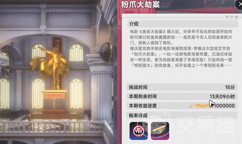 在异环三测版本中,都市闲趣模块迎来大规模内容更新,新增多款轻量级互动小游戏。其中“粉爪大劫案”玩法凭借强节奏感与高回报机制,迅速成为玩家热议焦点。该玩法不仅提供丰厚金币收益,更有机会掉落稀有道具——永恒之心,其单枚价值高达666666金币,是当前版本中价值最高的宝石类奖励。