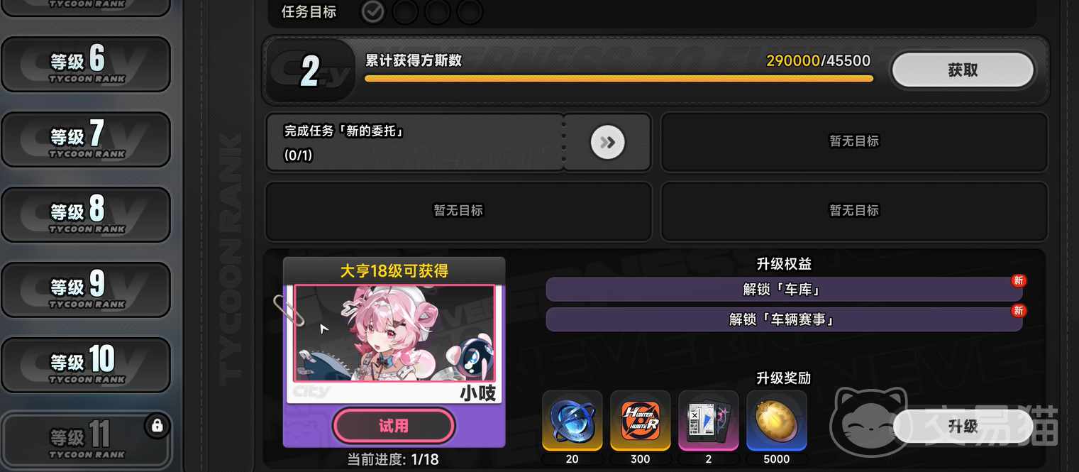 异环都市三测版本上线后,正式推出了“都市大亨”全新成长体系。该系统共设45级,逐级解锁功能与奖励,满级后可直接领取满阶小吱角色及专属配套武器。对于零氪或微氪玩家而言,这是一项无需额外付费即可稳定获取高价值养成资源的长期回馈机制。
