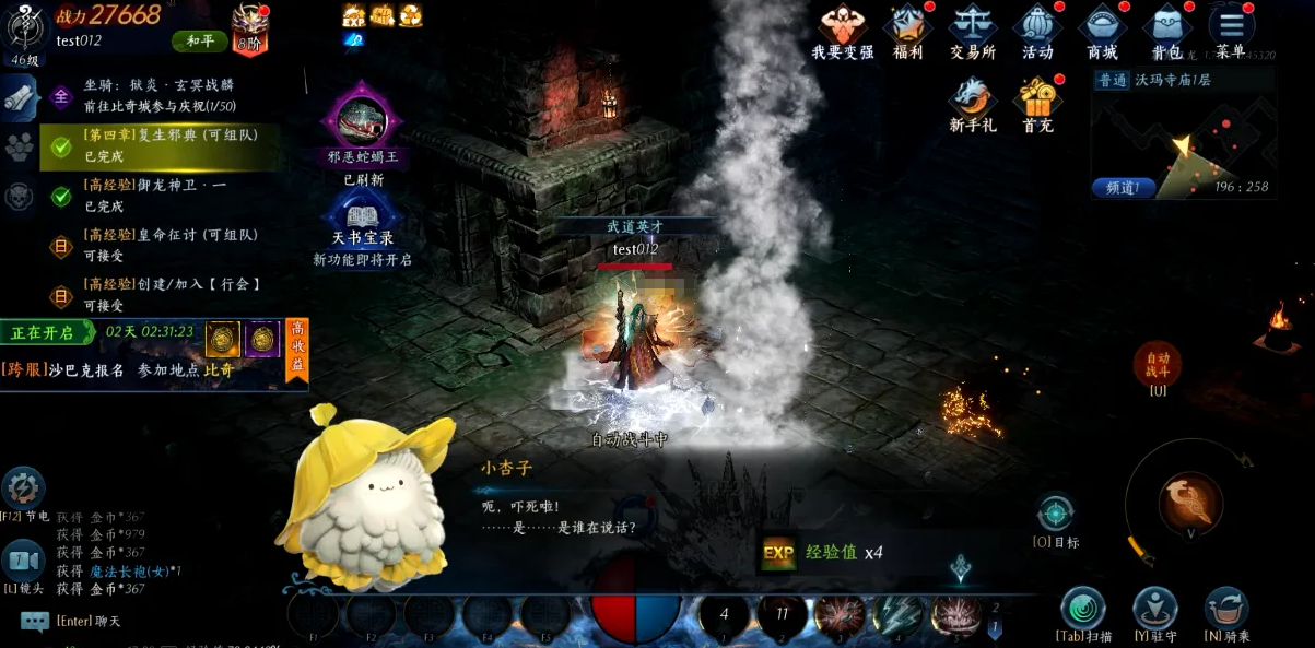 前期发育阶段,建议优先将技能点集中于【召唤神兽】与【灵魂火符】。其中,召唤神兽提供稳定承伤单位,有效分担角色压力;灵魂火符则承担主力远程伤害输出,二者协同构建“神兽抗怪—火符压血—循环清场”的高效挂机节奏,完美适配日常任务、低阶副本及小怪群刷场景。