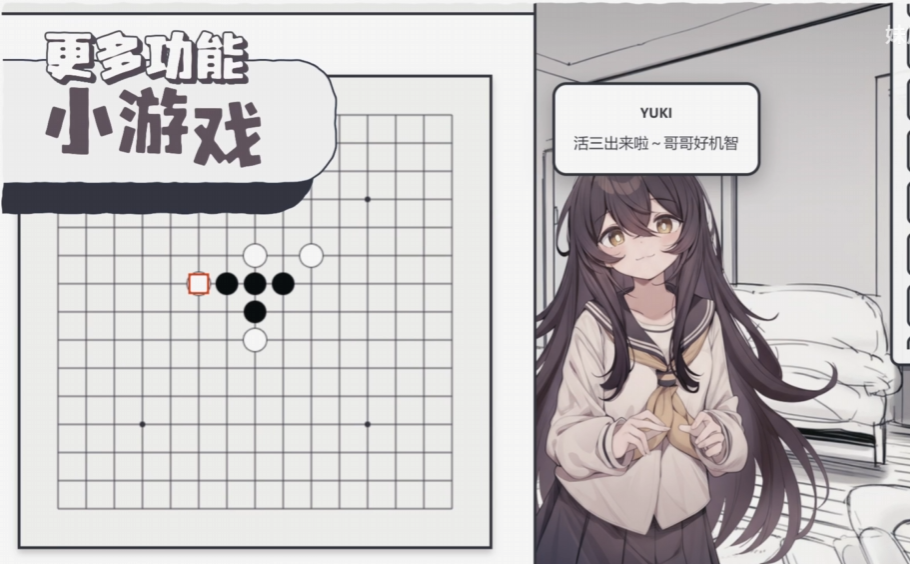 日常互动体系覆盖多个维度:支持自由文本对话、语音故事讲述、双人五子棋对弈等轻量玩法;同时设有礼物赠送系统,不同物品对应差异化好感度加成,助力关系深度发展。