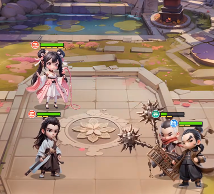 游戏初期场景设定于桃花坞,剧情自然引出首场教学战——讨伐采花贼。此战全程引导式设计,难度极低,旨在帮助新玩家快速掌握行动顺序、技能释放时机与基础属性克制关系。