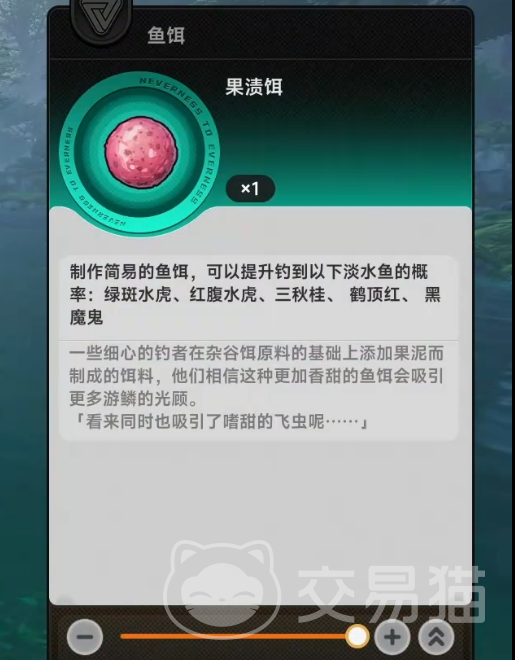 三类饵料构成清晰的策略层级:新手鱼饵承担通用兜底职能;杂谷饵与果渍饵则分别覆盖不同淡水鱼谱系,二者不可互相替代。实际垂钓中,应依据地图图鉴中标注的区域鱼种分布,动态切换饵料类型。推荐常备至少两种专精饵料,并在背包中预留20格以上空间以保障多场景适配能力。