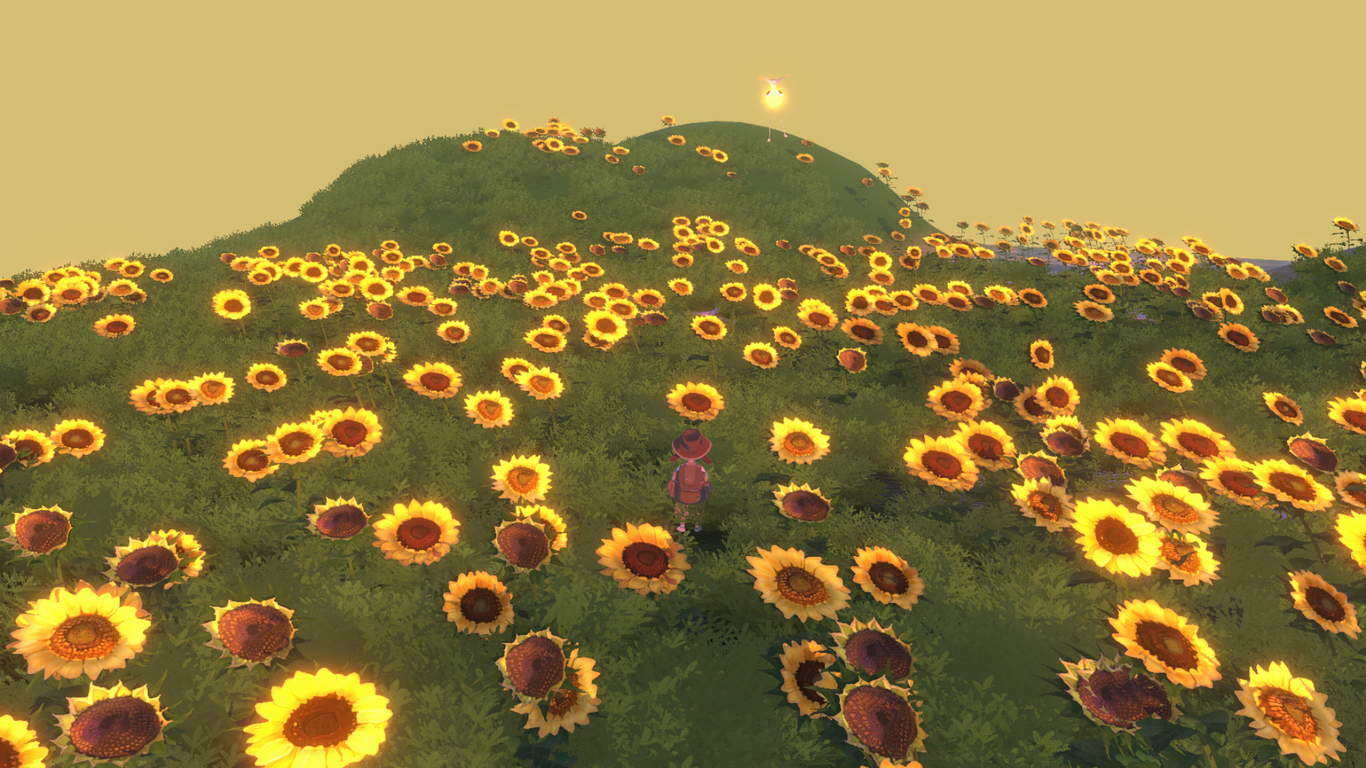 美术风格上,《风与牧场》成功融合田园牧歌式清新美学与硬核科幻视觉语言。画面既有柔和光影与细腻植被表现,又通过金属结构、引力场可视化、星尘粒子等元素强化宇宙尺度的真实感。虫群作为场景中唯一原生生命体,既是陪伴者也是经营核心——玩家须种植大片向日葵,既用作经济资源,亦为虫群提供必需食粮,构建闭环生态逻辑。