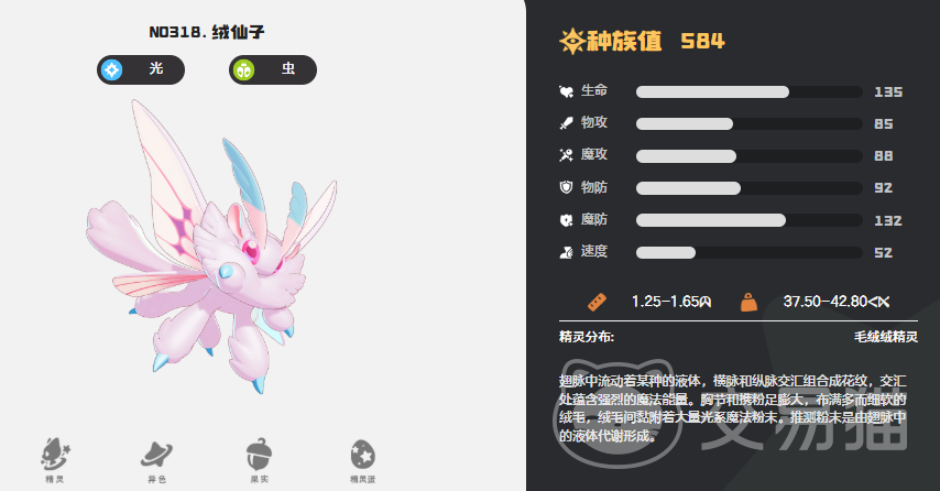 在生命值(HP)维度上,绒仙子以162点基础HP位列榜首。该数值赋予其出色的生存能力,同时其特性可为全队提供速度增益:每当队伍中存在一种不同属性的精灵,绒仙子入场时即获得10点速度加成,多属性混搭阵容下优势尤为明显。若暂未获取绒仙子,蹦床松鼠是优质替代选择,其HP种族值为161,仅相差1点,同样具备高容错率与战术延展空间。