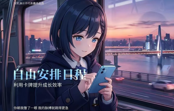 在玩法层面,《心动循环》突破传统恋爱模拟框架,创新引入“动态卡牌成长系统”:每张卡牌对应一项日常行为(如课堂听讲、社团协作、自习专注等),行为积累将提升角色好感度,并触发卡牌进化,进而解锁专属增益效果。同时,游戏融合生活化肉鸽策略机制,使每一次选择都影响角色成长路径与剧情走向。