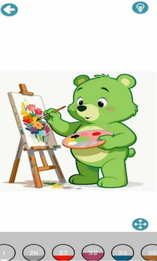 游戏采用数字引导式填色机制,所有图案均以空白线稿呈现,每处区域标注唯一编号,玩家只需点击对应数字区域,系统将自动匹配预设颜色完成上色。无需调色、不依赖画笔,全程通过触控操作完成创作,大幅降低使用门槛。