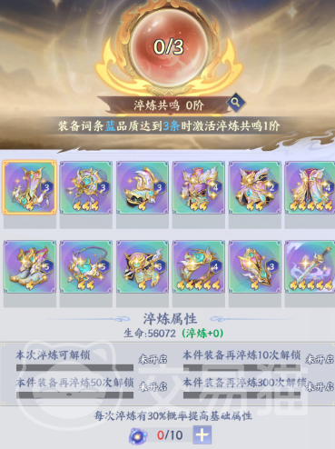 淬炼为深度定制化养成模块,用于激活装备隐藏潜力。单次淬炼有30%概率提升基础属性数值;当某件装备的蓝品质词条数量累计达三条时,自动激活淬炼共鸣,进一步放大战力收益。过程中可启用灵萃功能重置词条组合,适配职业定位:输出流派优先锁定暴击率、攻击力类词条;防御向角色则侧重生命值、物理防御词条。需注意,淬炼次数与属性槽开放呈线性关系——单件装备完成300次淬炼后,所有隐藏属性槽将全部解锁,达成该装备的毕业形态。