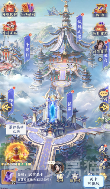 该玩法入口位于游戏主界面右下角【历练】功能区,点击即可进入专属场景。整体美术风格严格遵循小说设定,建筑轮廓、光影层次与氛围渲染均凸显黑角域特有的混乱与压迫感——断壁残垣间暗流涌动,巷陌深处似有强者气息隐现。进入后首先进入章节推进模式,共设多个关键阶段:初临黑角域、收服外围势力、建立黑盟雏形、镇压叛乱、最终问鼎域心。首章敌方单位均为低阶散修或小型帮派,战斗强度适中,重在引导玩家掌握行动逻辑、技能释放时机与回合资源分配规则。