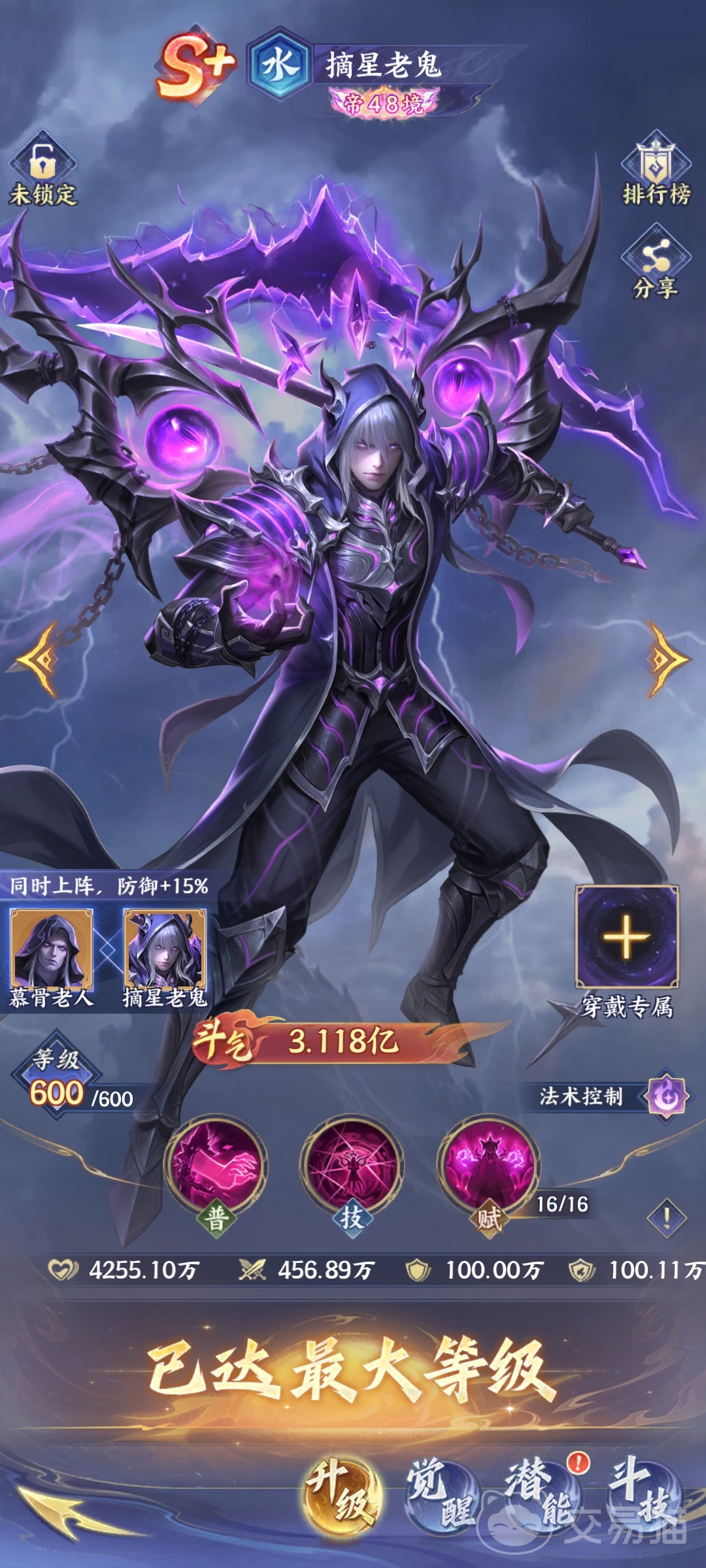 《斗破苍穹》手游中,摘星老鬼作为S级水属性斗者,定位为高阶法术控制型核心角色。其成长曲线呈现明显后期发力特征:前期表现中规中矩,以群体伤害为主;但随着星级提升与阵容协同深化,控场强度与团队增益能力将显著跃升,成为中高难度副本与PVP对战中的关键支点。