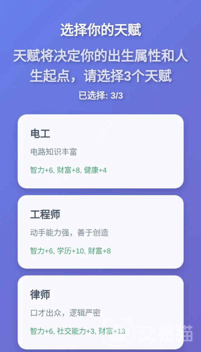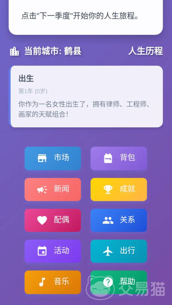 游戏采用分阶段叙事结构,开局即赋予玩家对基础人设的深度定制权——包括出生地域、家庭背景、初始天赋等关键变量。每一次选择都将影响后续事件触发概率与资源积累效率,其中“运气”作为核心成长属性,会随决策质量动态变化,成为推动人生轨迹走向的关键变量。