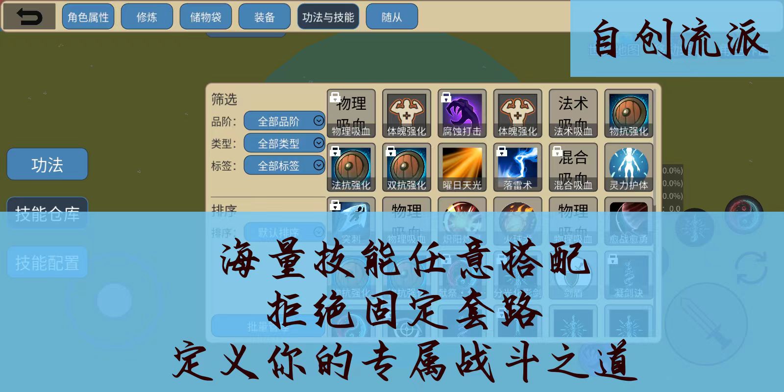 在养成维度上,游戏采用深度装备重构机制:所有装备词条均可自由拆解、跨部件重组,实现千变万化的属性适配;同时内置海量原创功法库,覆盖剑修、法修、体修、符修、蛊修等多元修真路径,每条路线均具备独立成长曲线与战术定位。战斗策略深度与角色个性化程度高度统一,使每一次失败都成为流派迭代的起点,每一次胜利都源于精准的体系优化。
