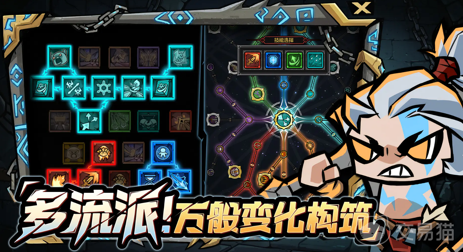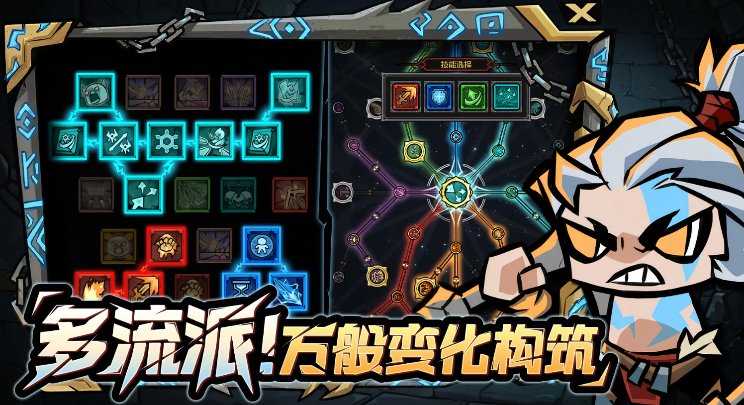 游戏采用2.5D俯视角设计,内置数百种威能词条系统,支持玩家自由搭配组合;配合多分支天赋树结构,可稳定构建冰冻、流血、灼烧、感电等差异化战斗流派。该设计既强化了策略决策权重,也提升了单局成长反馈的多样性与重玩价值。