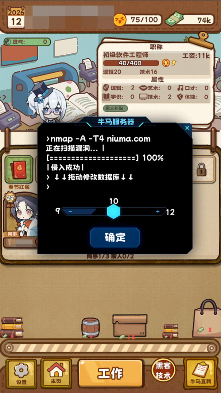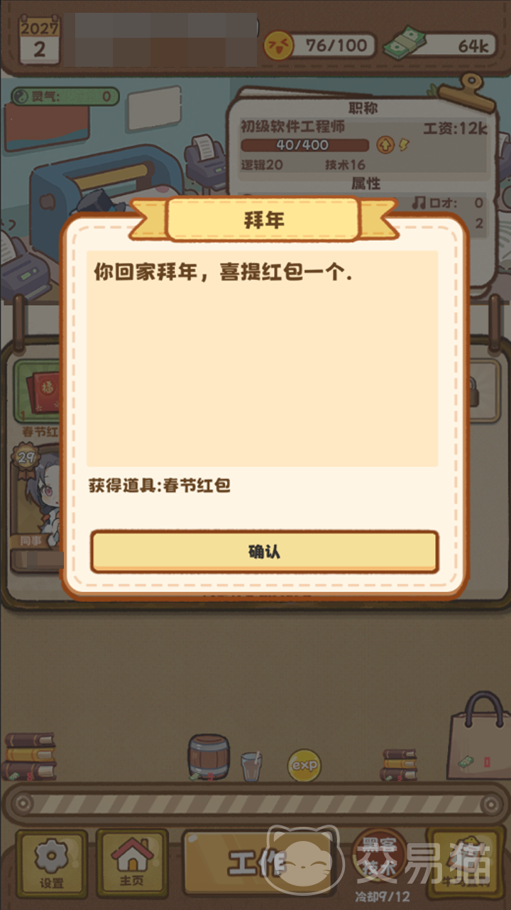本作深度还原当代职场生态,在轻松幽默的表层下嵌入真实感十足的职业困境设计。随机事件系统贯穿全程——从“临危受命接项目”到“被甩锅背黑锅”,从“领导口头画饼”到“突发过劳提示”,每个节点都呼应现实职场情绪。玩家需在有限选项中权衡风险与收益,体验高度拟真的职业生命周期。
