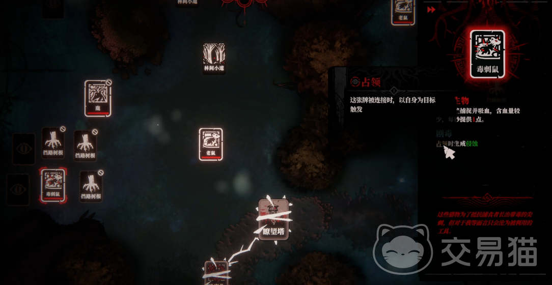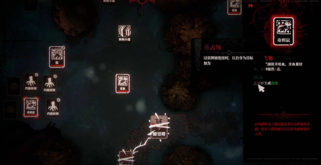 游戏核心机制围绕“根系演进”展开:玩家通过部署具有特定效果的卡牌,逐步解锁新区域、激活隐藏路径,并构建角色间的关系网络。每张卡牌一旦打出即不可撤销,其效果可能触发关键线索、促成NPC互动,或打通非人物实体间的隐性关联,从而获取推动主线所必需的稀有道具。