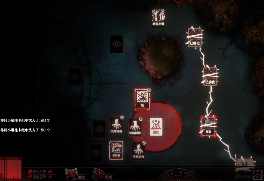 综上,《腐根之里》在传统卡牌策略框架基础上,强化了不可逆决策压力与环境耦合度。全章节卡牌落点均无悔棋机制,任一关键失误都将导致当前章节进度重置。这种设计显著提升了策略纵深感,也对玩家的全局规划能力提出更高要求。