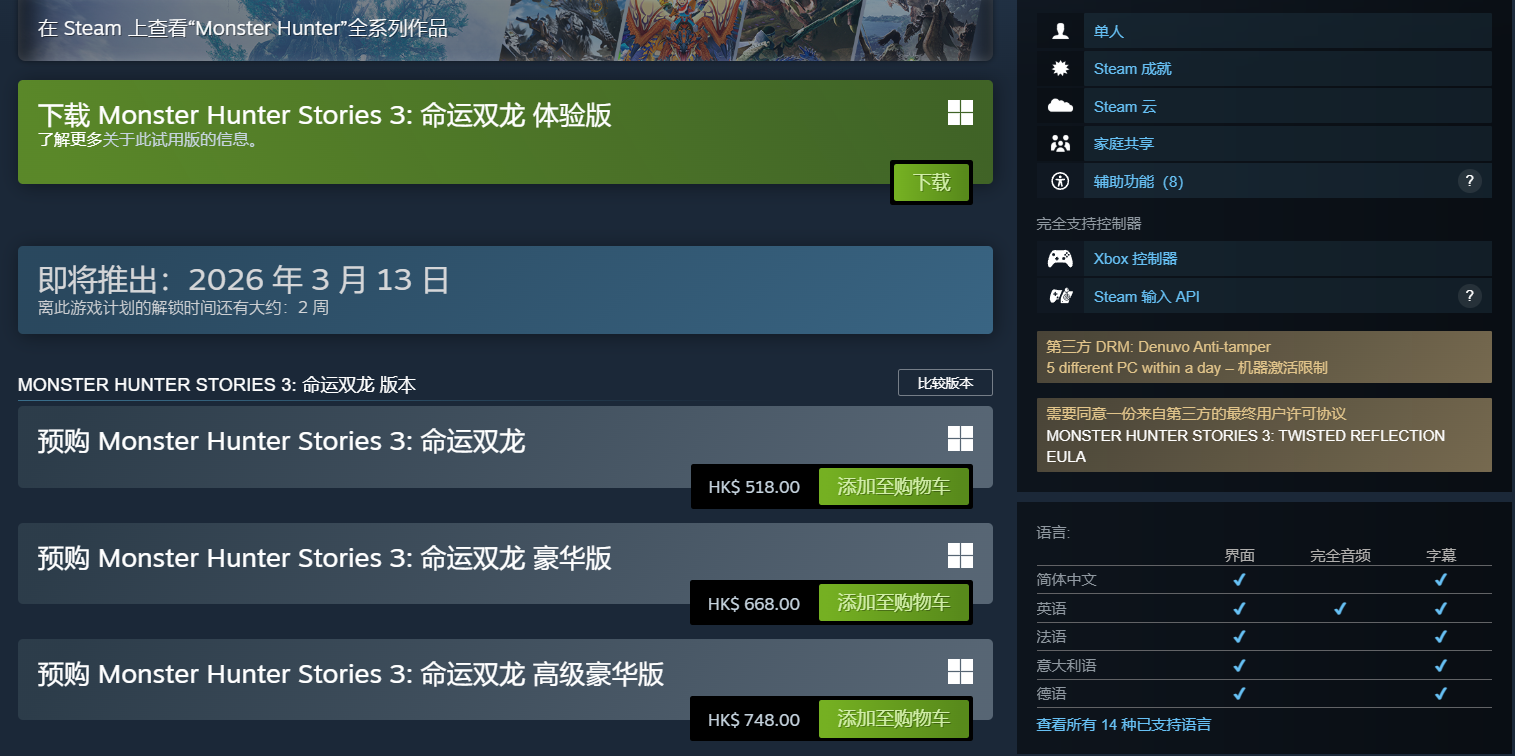 怪物猎人物语3 价格多少?发售售价及版本区别详解