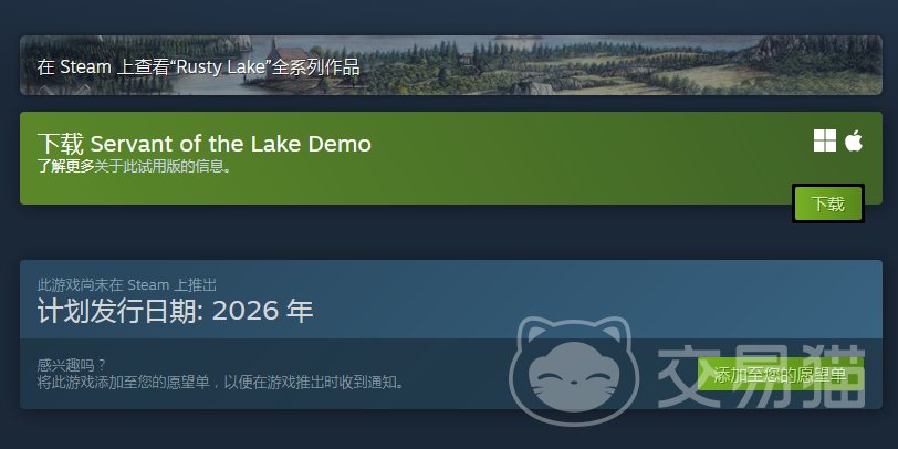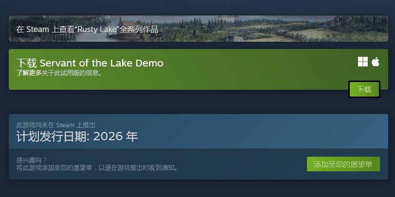 根据Steam官方页面信息,《湖之仆从》已确认将于2026年正式发售,具体上线日期尚未公布。目前游戏已开启页面预热,标志着开发进入收尾阶段,距离玩家实际游玩已进入倒计时周期。